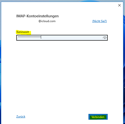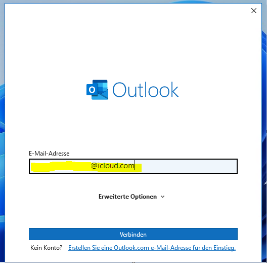 Outlook 365 Desktop App – iCloud E-Mail Konto einrichten